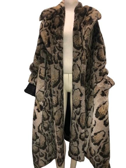 CALUGI E GIANNELLI Rare Fake Fur Wide Coat Animalier Print Extra Wide Hem #calugiegiannelli #rare #vintage #fur #madeinitaly