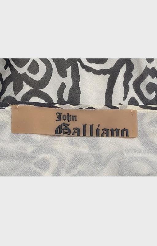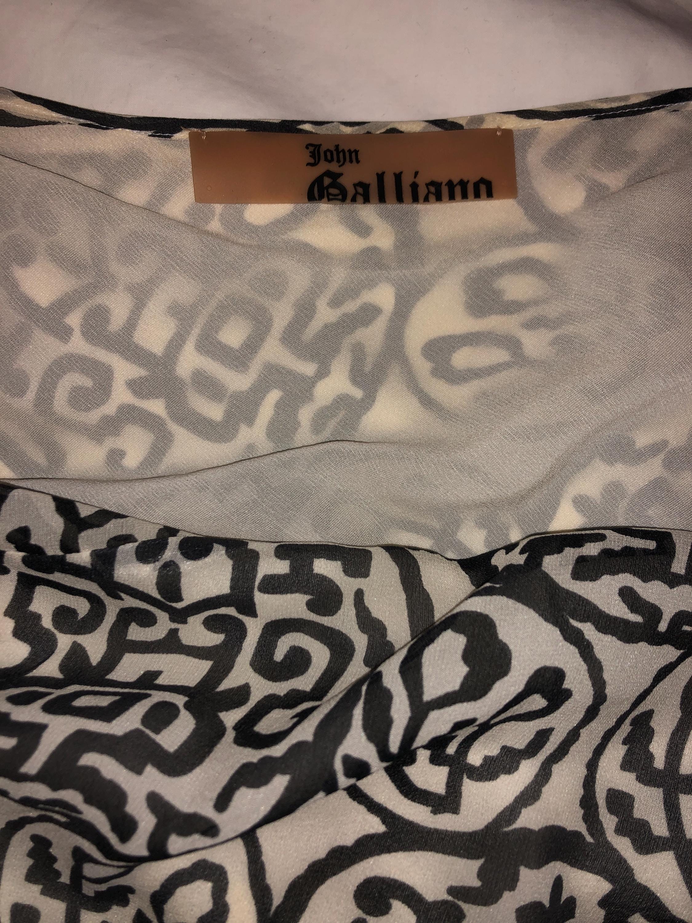 JOHN GALLIANO Pure Silk Printed Asymmetric Skirt with Ribbon Drapery on the Side. Size 40 ITA #Rare #Vintage #silk #Draped #slit