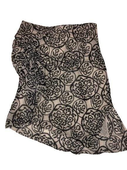 Rare Vintage Asymmetric Midi Skirt in Printed Pure silk.
