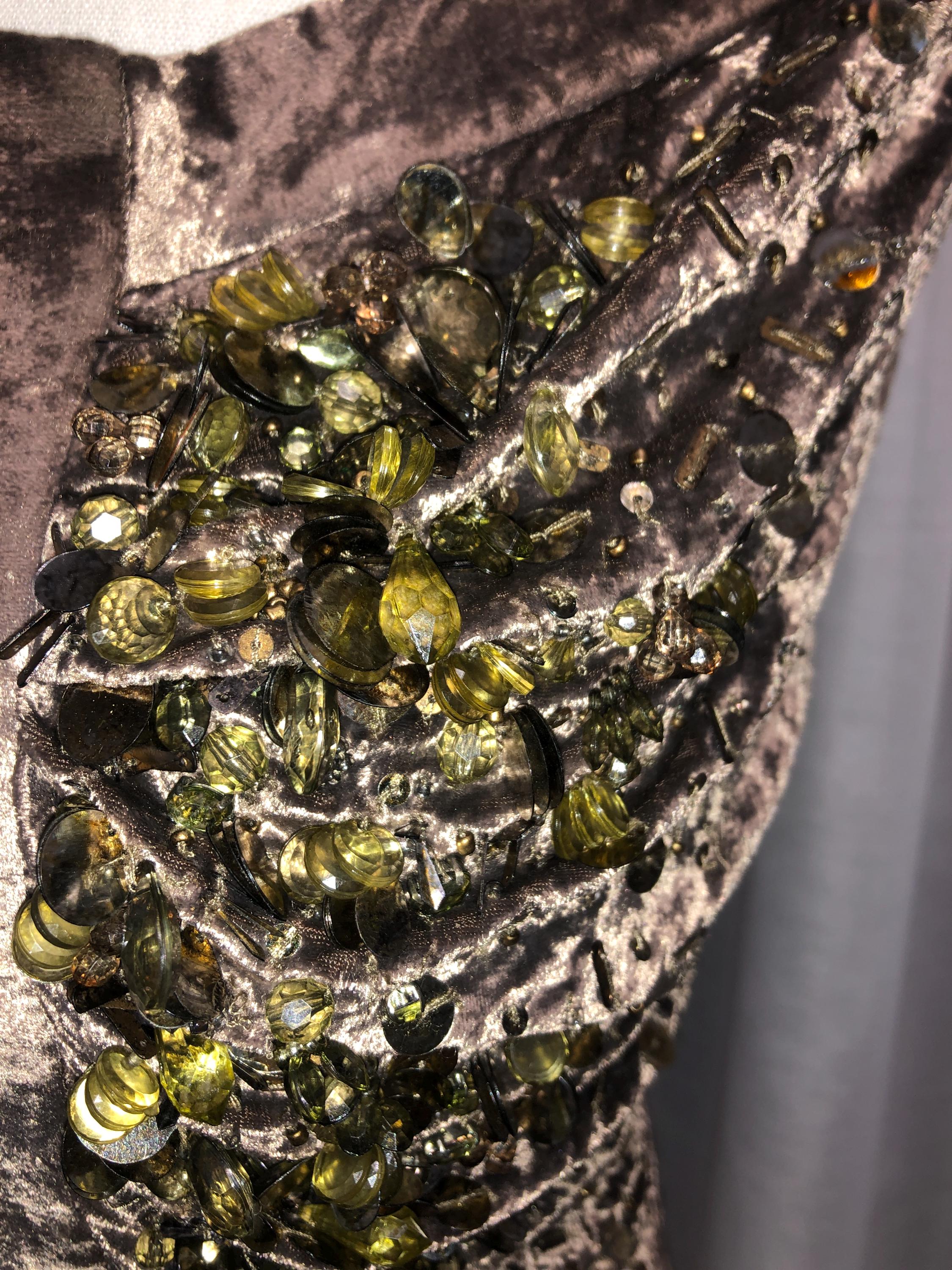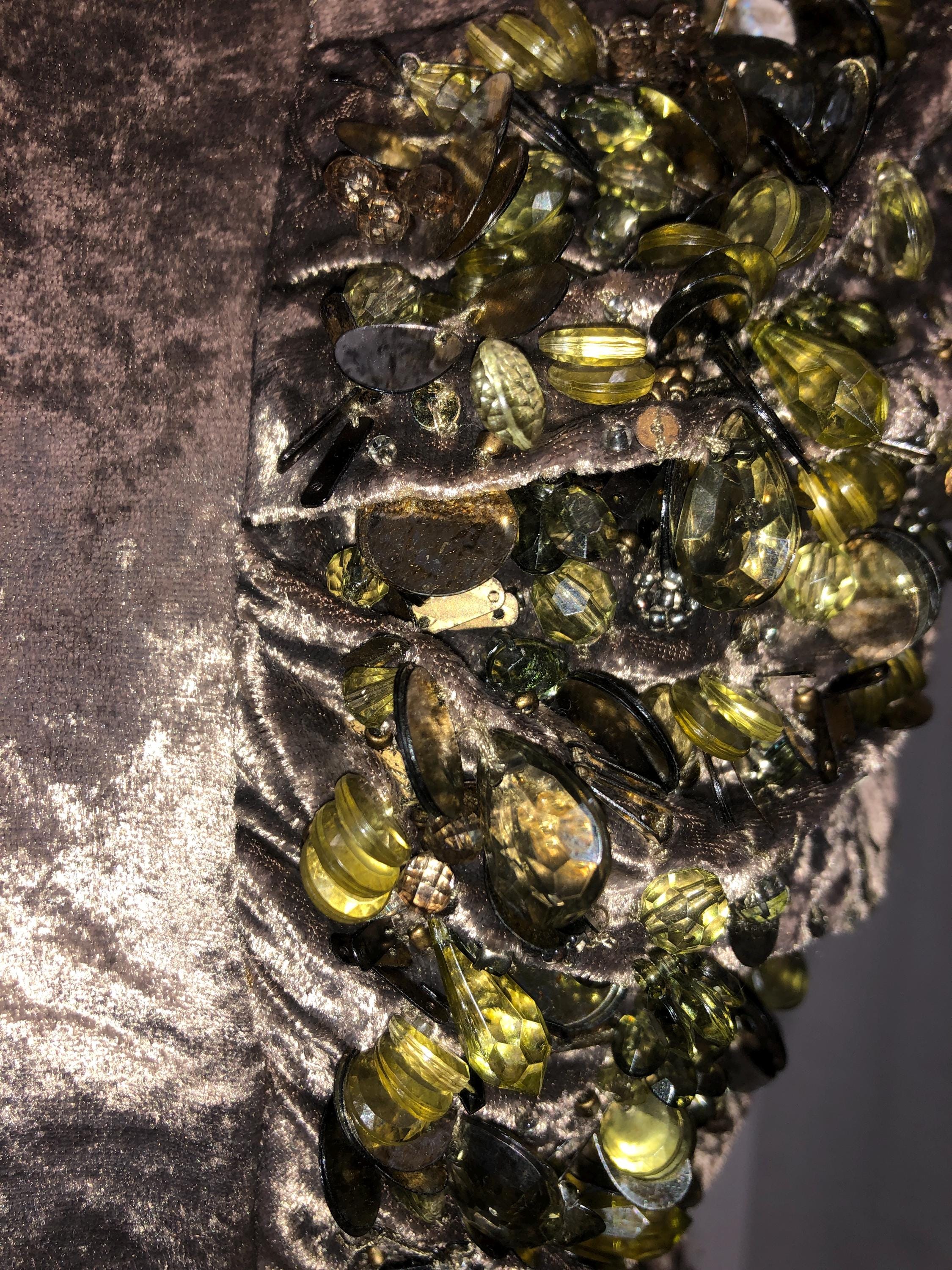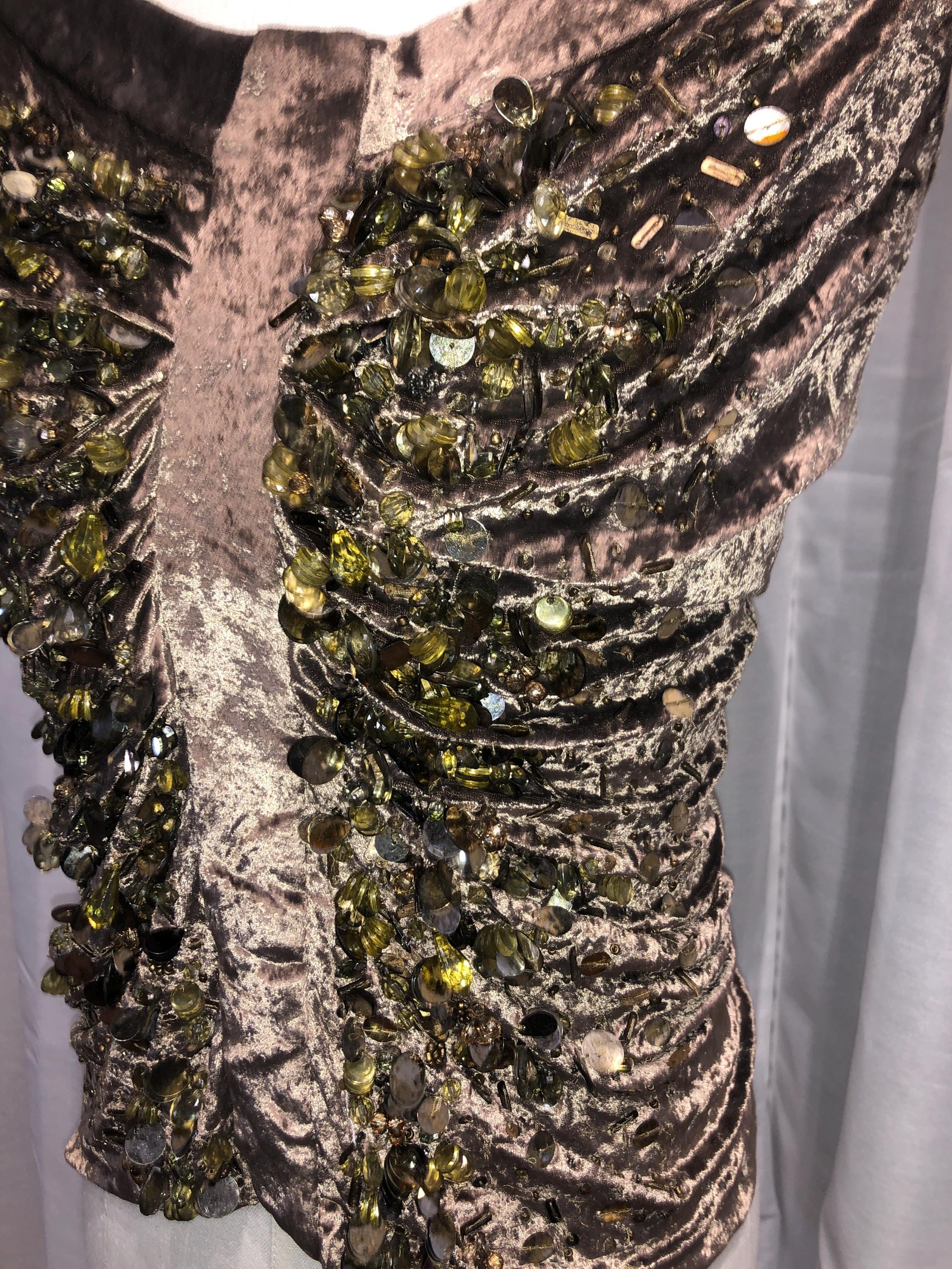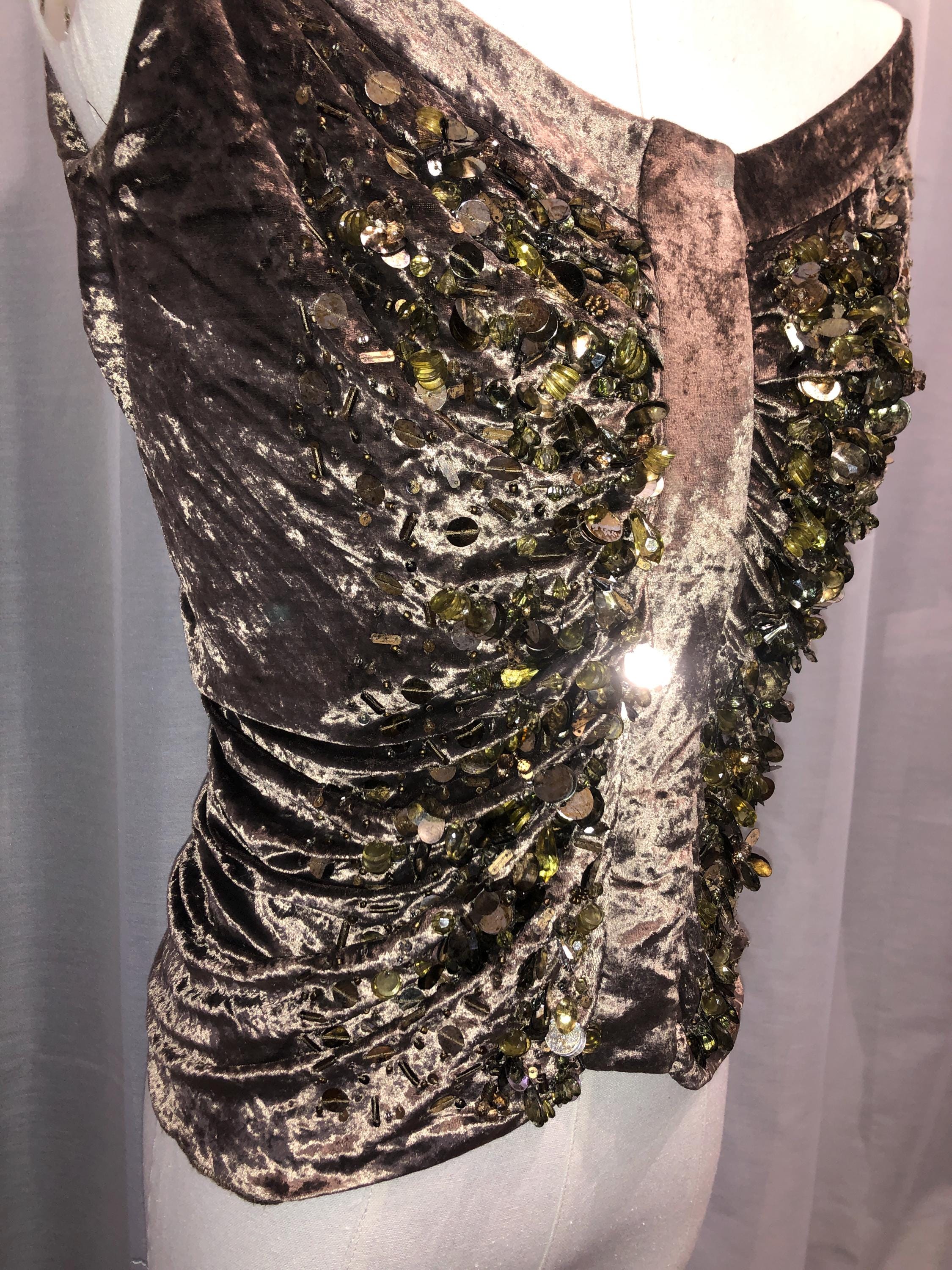 JOHN GALLIANO Embellished Draped Top in Bronze Taupe Color in Elastic Velvet with Multi types of Sequins Hand Made Embroydery size M