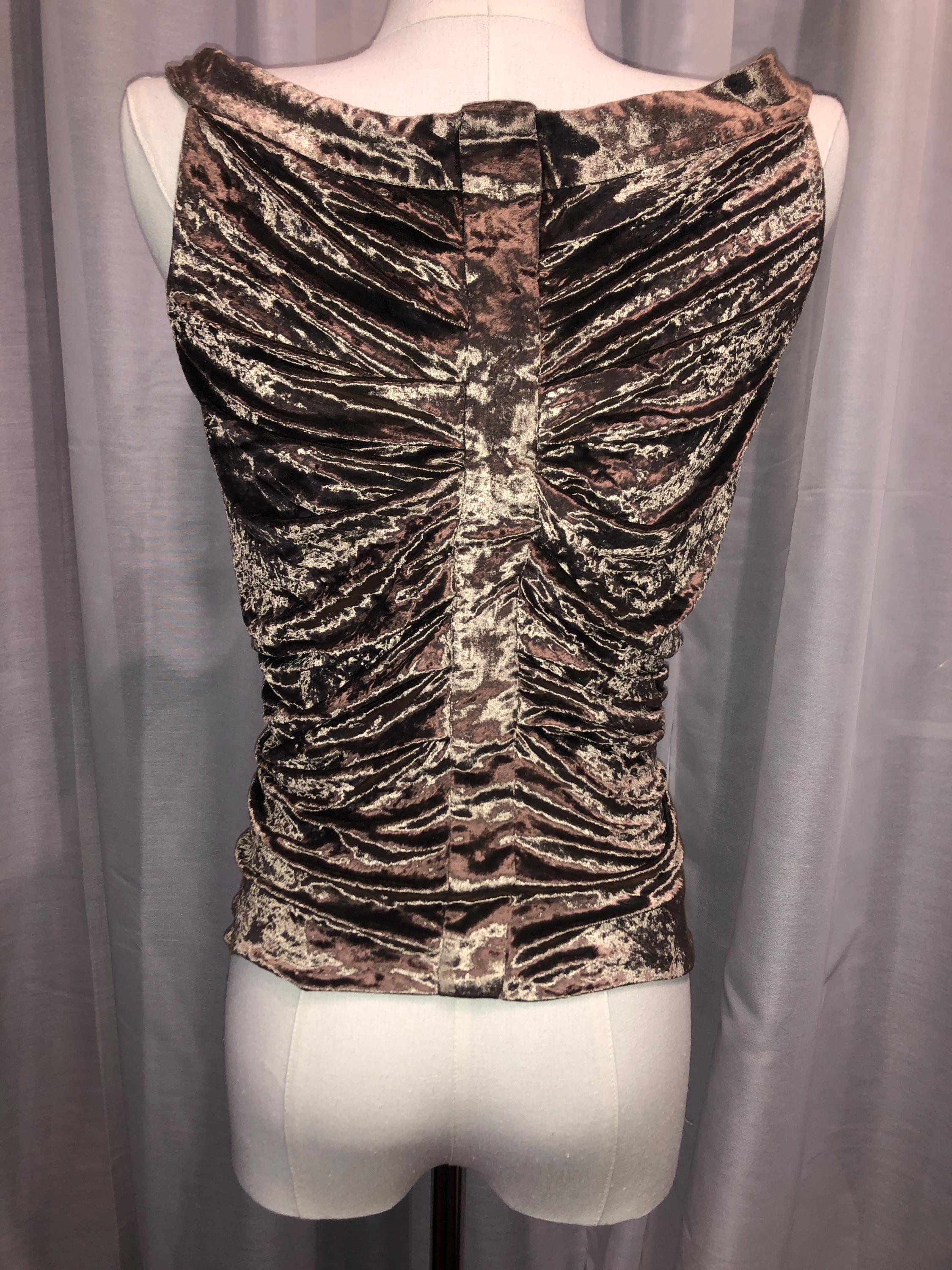 Rare Draped Top in Elastic Velvet, Bronze /Taupe Color.