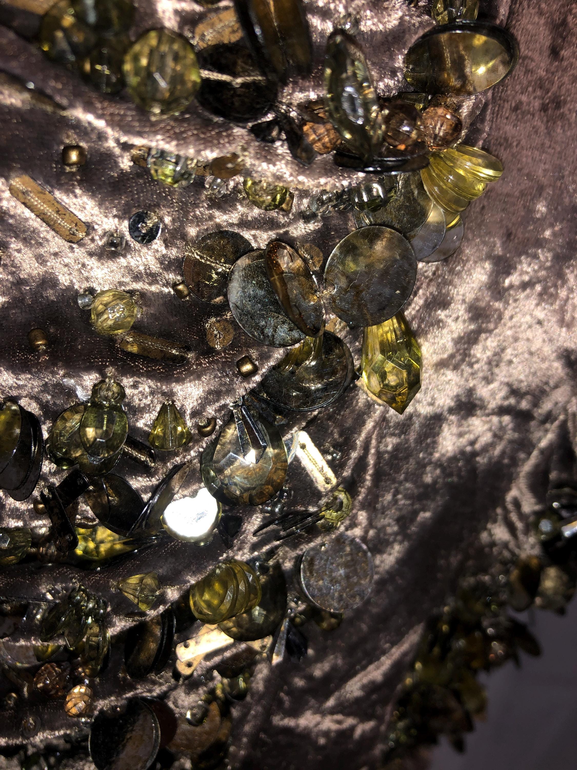 Hand-Made Embroydery with Multiple Kinds of Marmorized /Aged Round Sequins, some drops shape, small Baguette, etc.