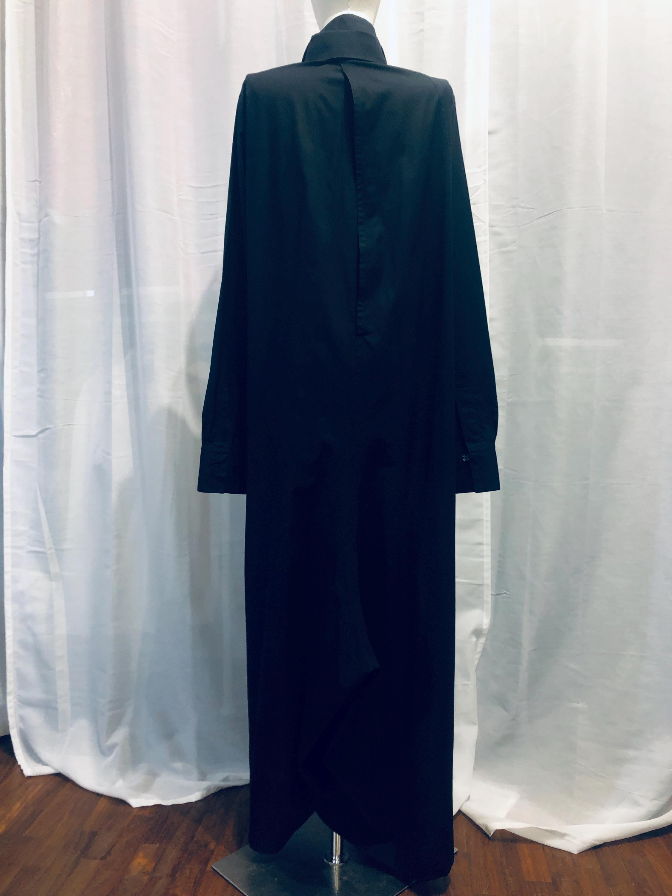 YOHJI YAMAMOTO Black Light Poplin Cotton Jumpsuit size 3 JP (M) #yohjiyamamoto #rare #vintage #jumpsuit #wide #openbackside #medium