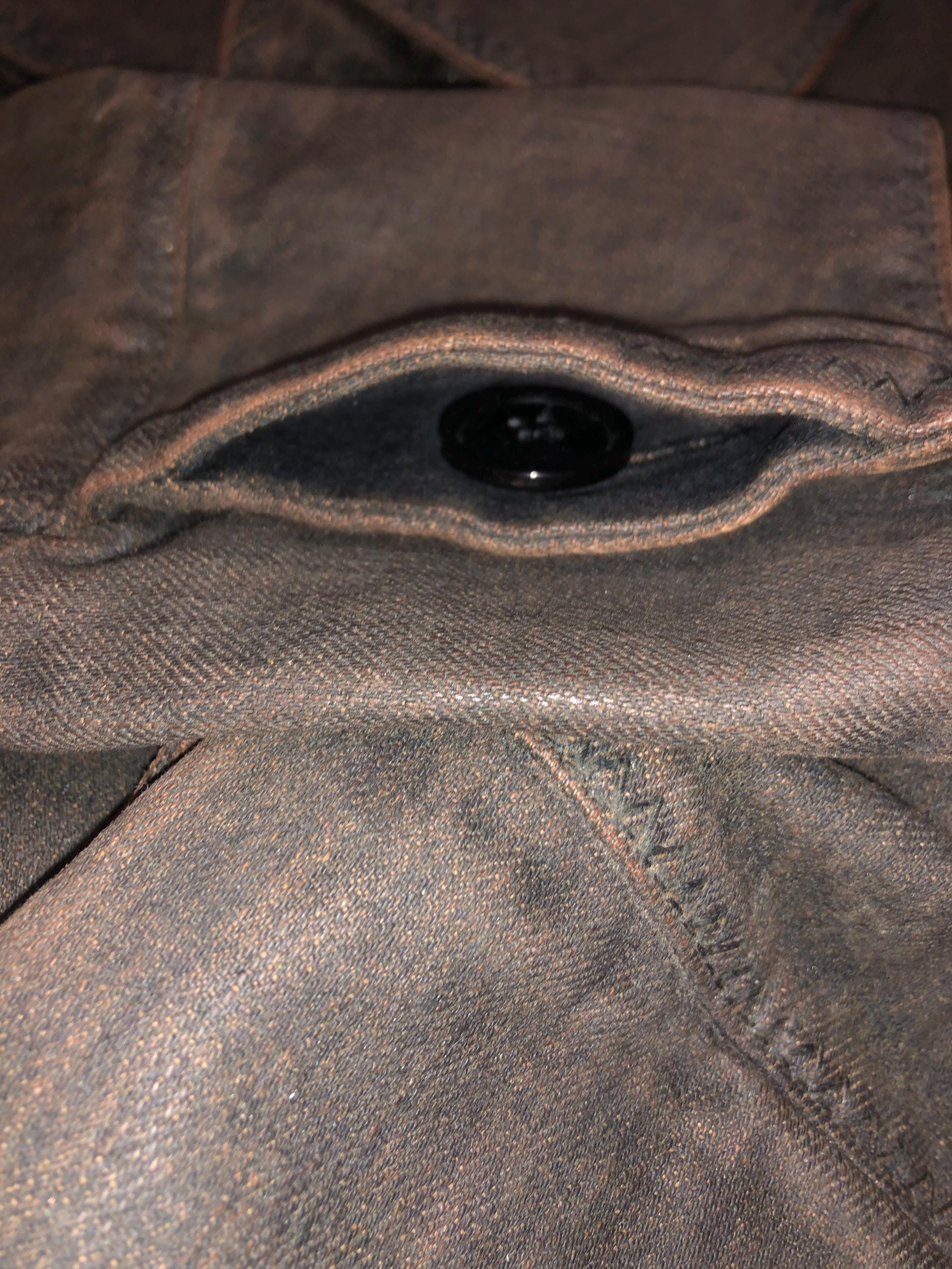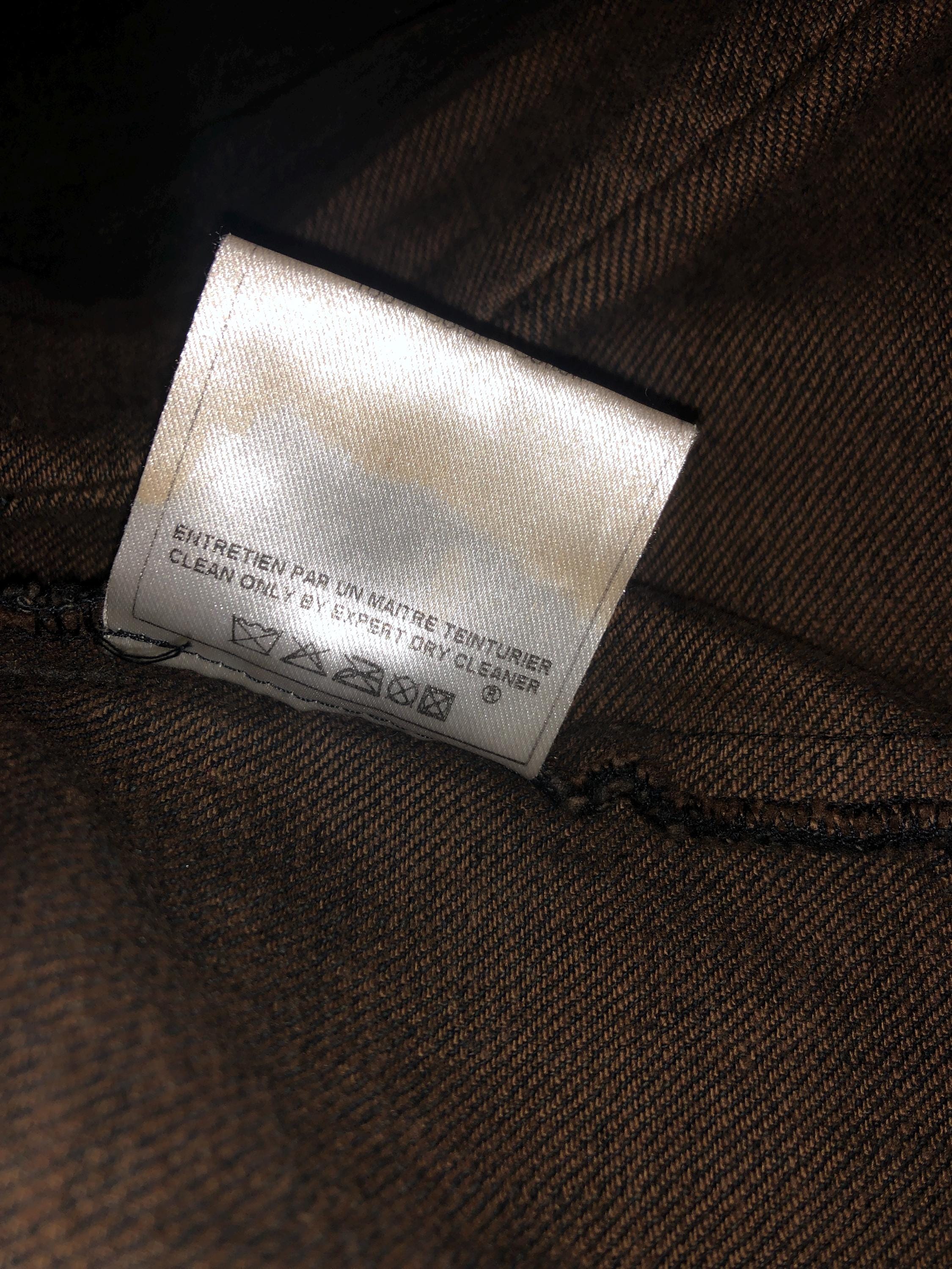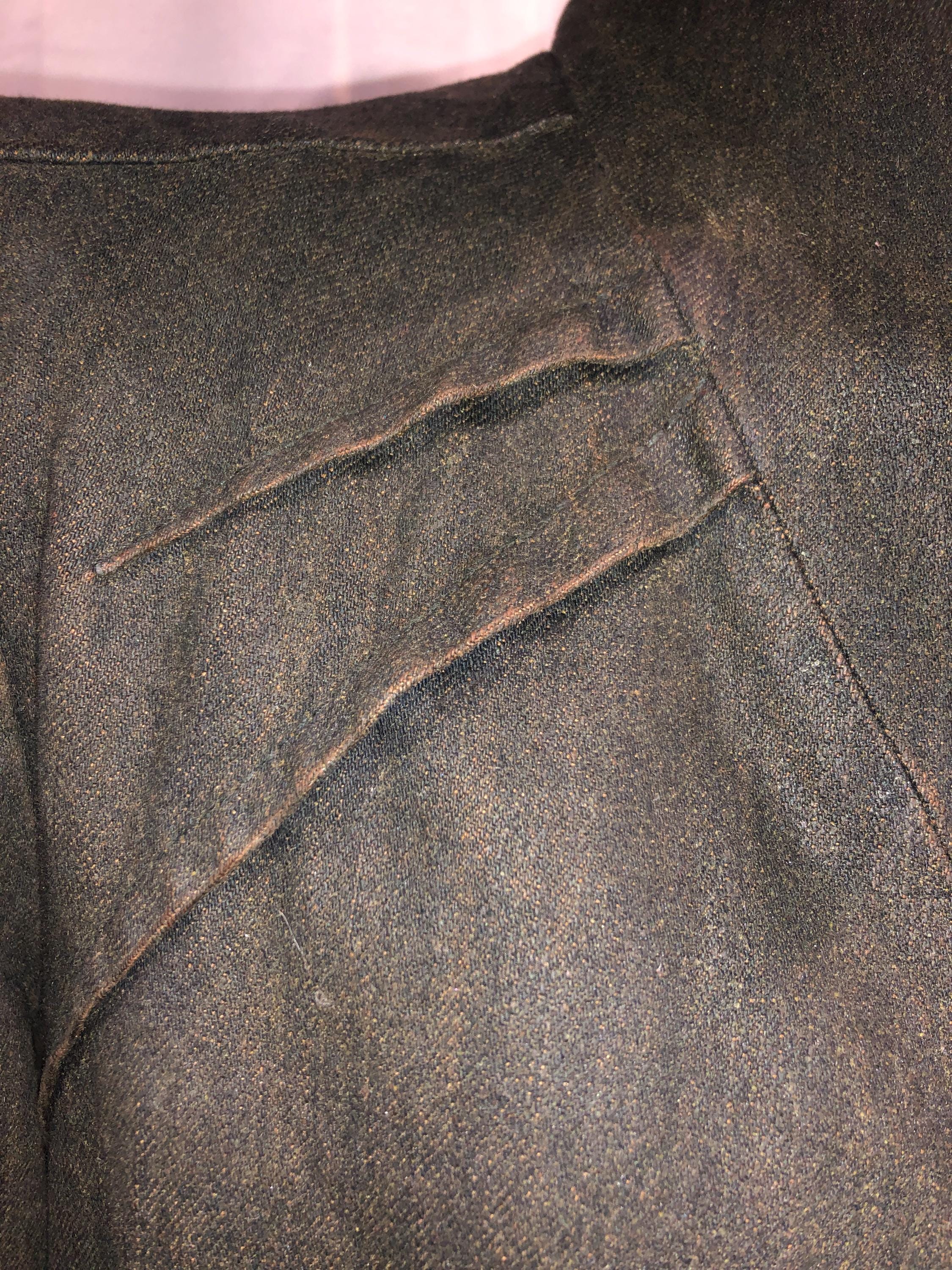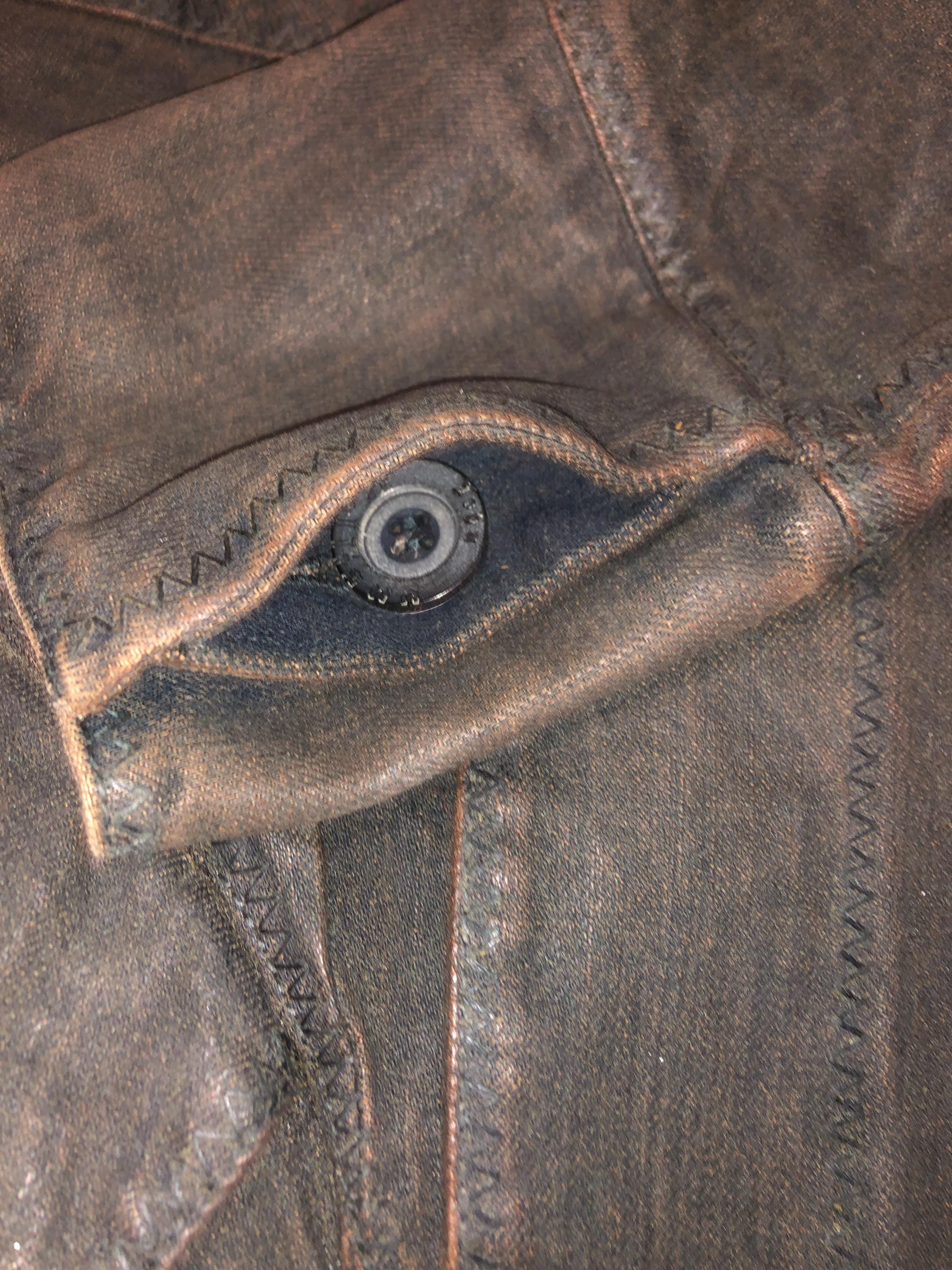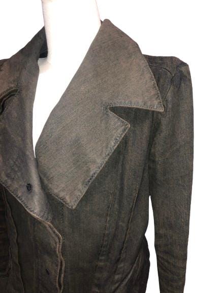 Coated Denim, in Gray Undertones (becoming brown) Asymmetric Collar Jacket.