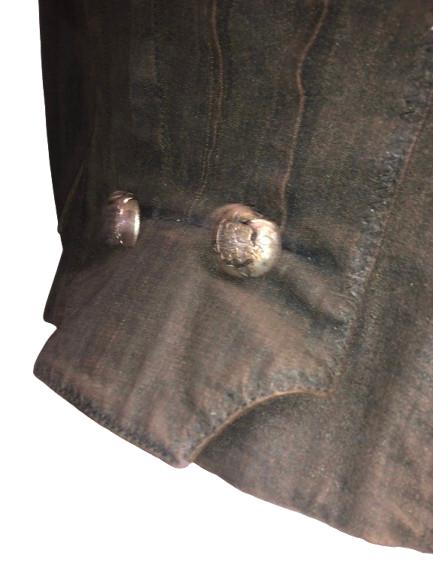 Little Shaped Basque in the Back with "Broken up" open Silver Metal Buttons as Decor.