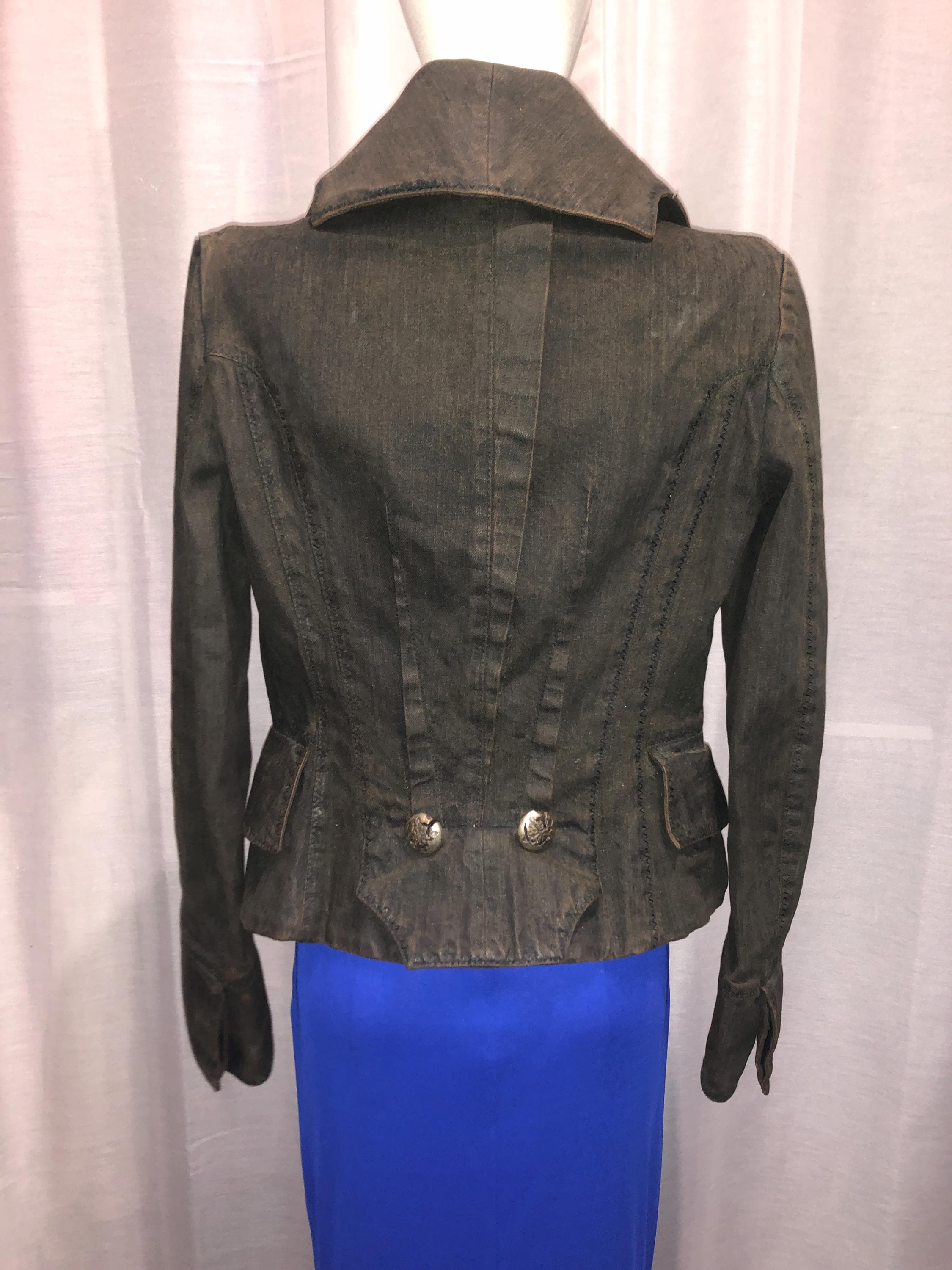 JOHN GALLIANO Coated Denim Piratesque Embellished Jacket Size FR 40 #JohnGalliano #rare #Vintage #Denim #Pleats