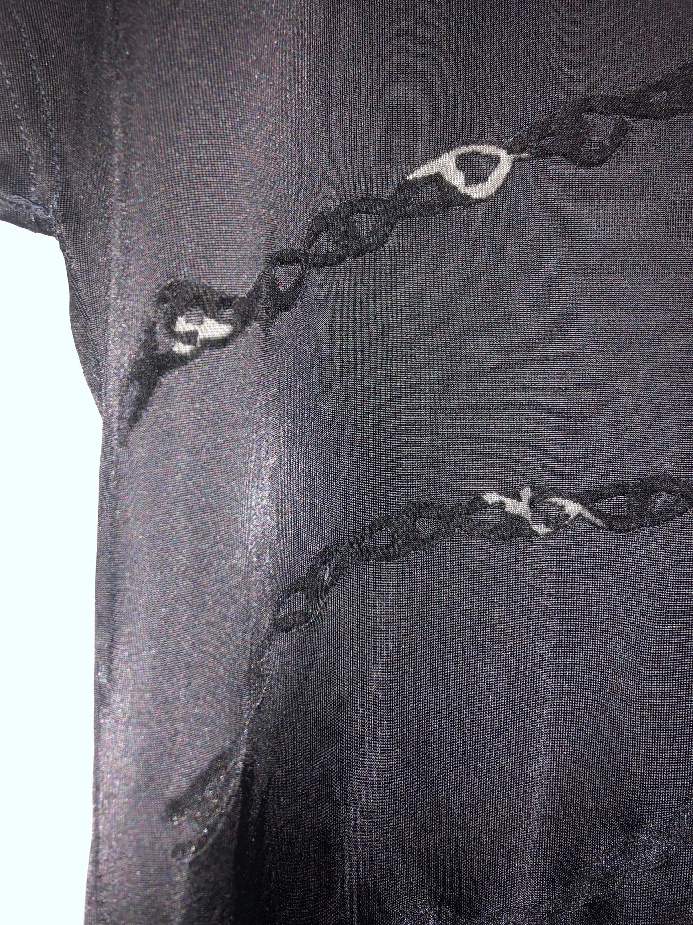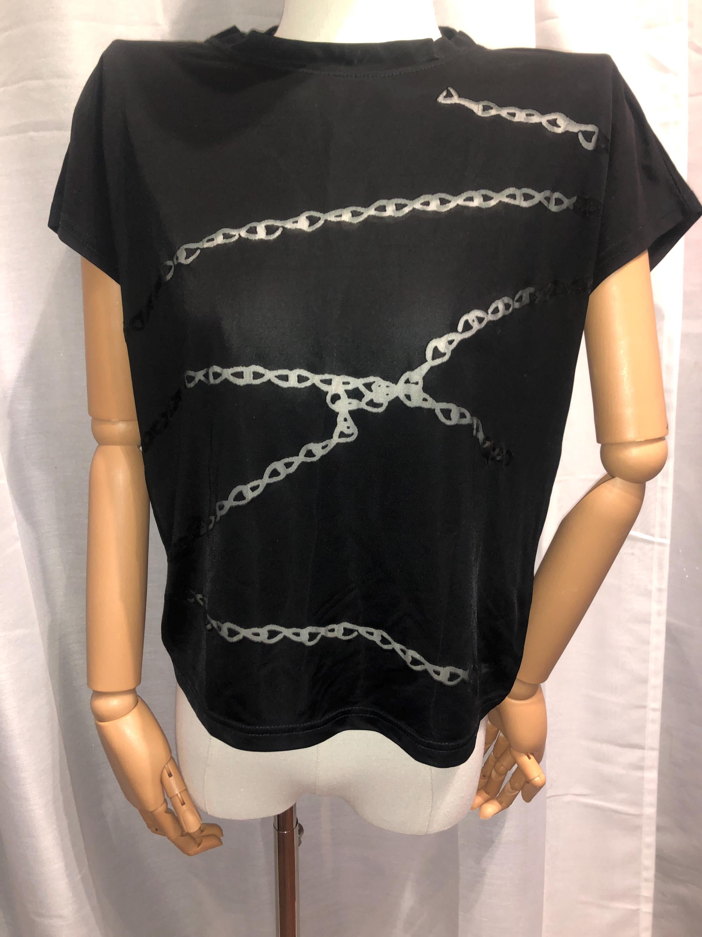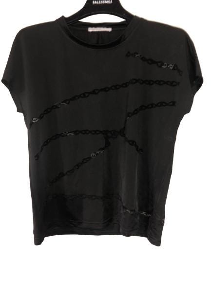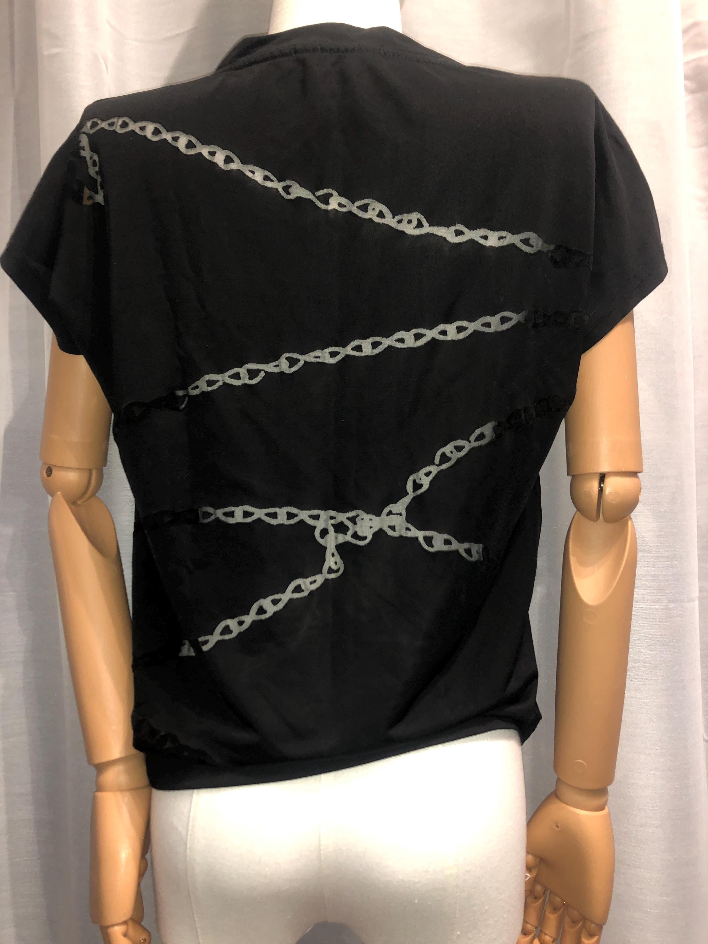 1996 S/S "The Hunger" Collection Devore Chain Motif Black Viscose and Nylon T Shirt Size L.