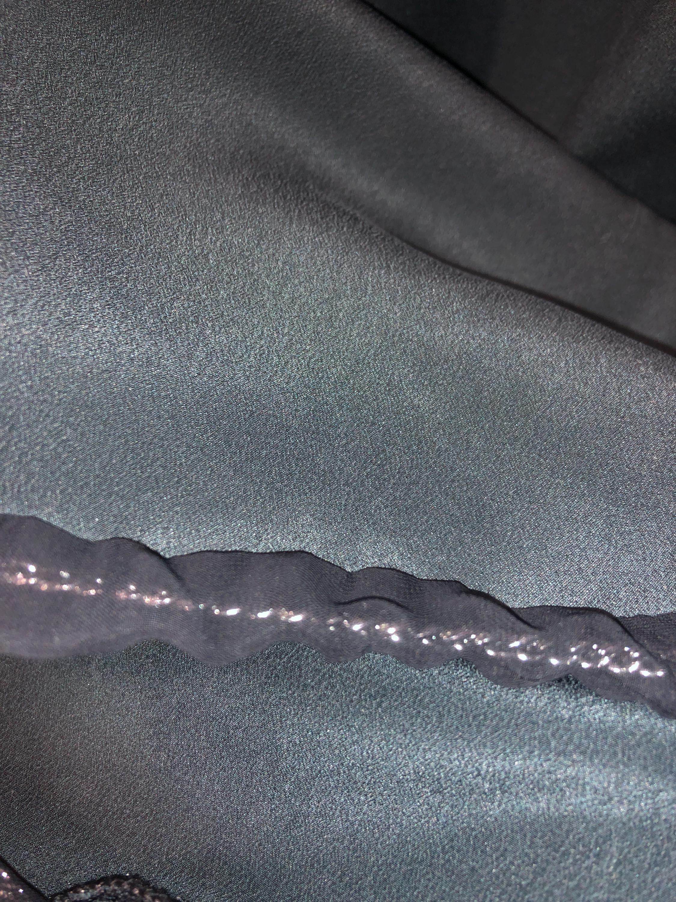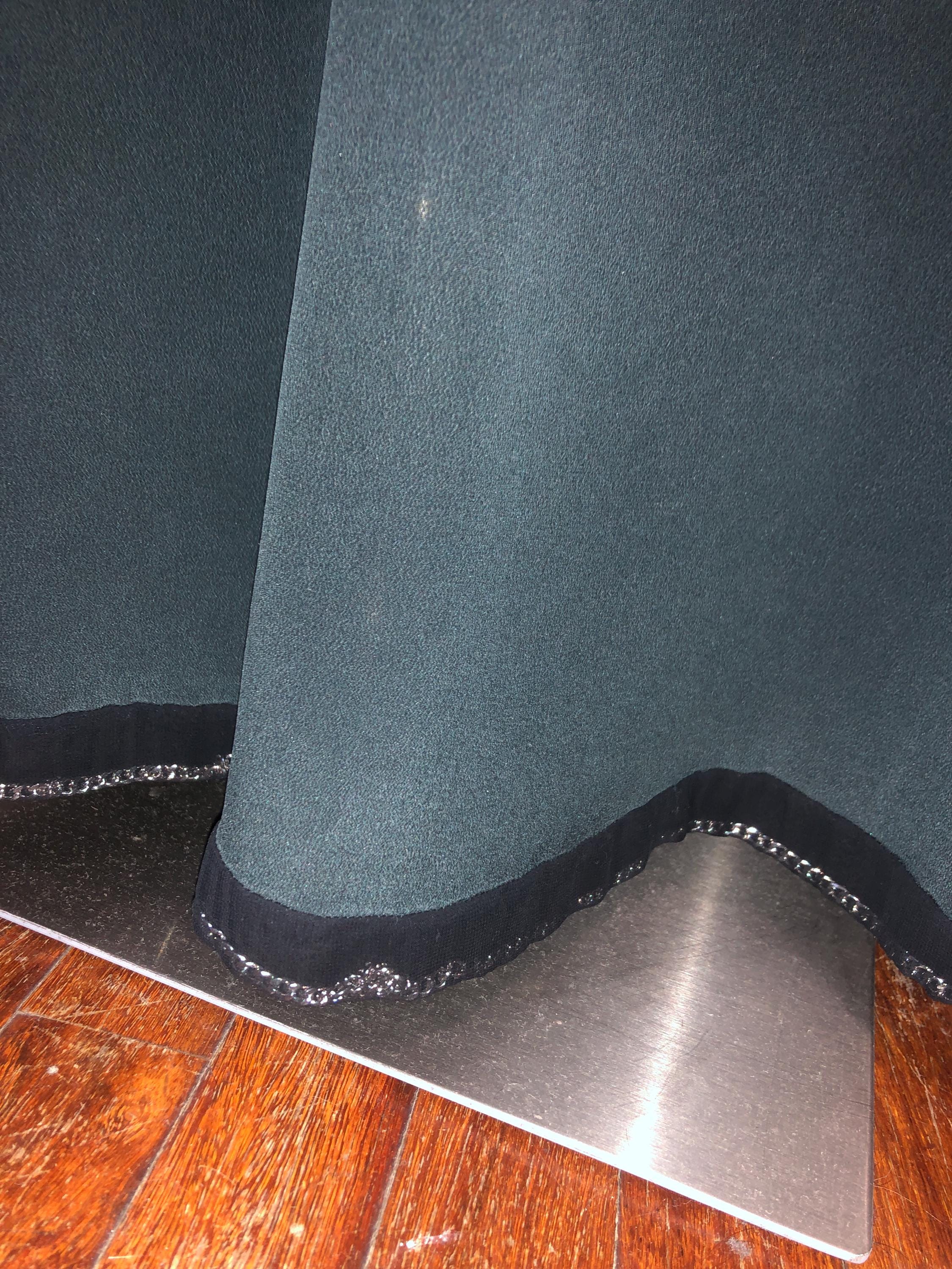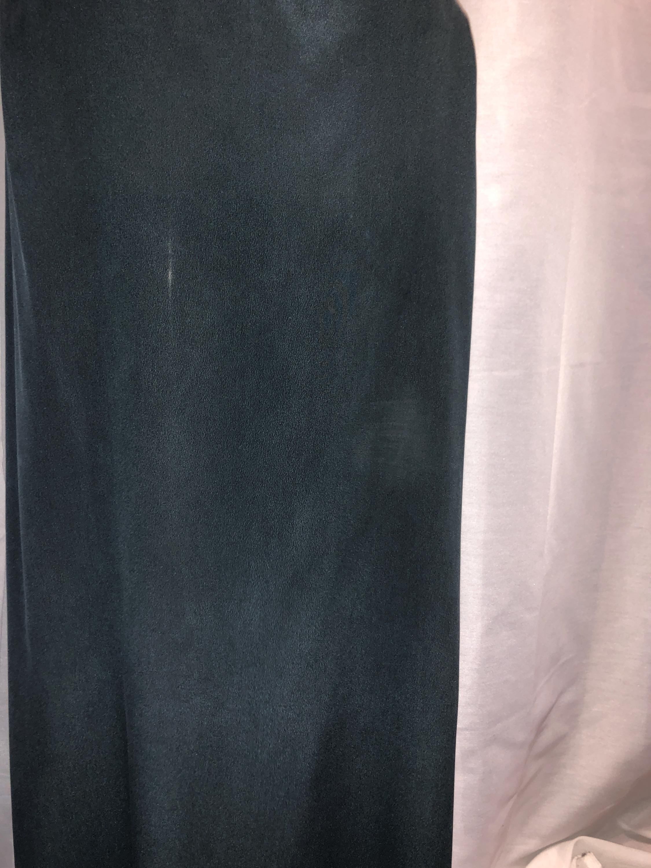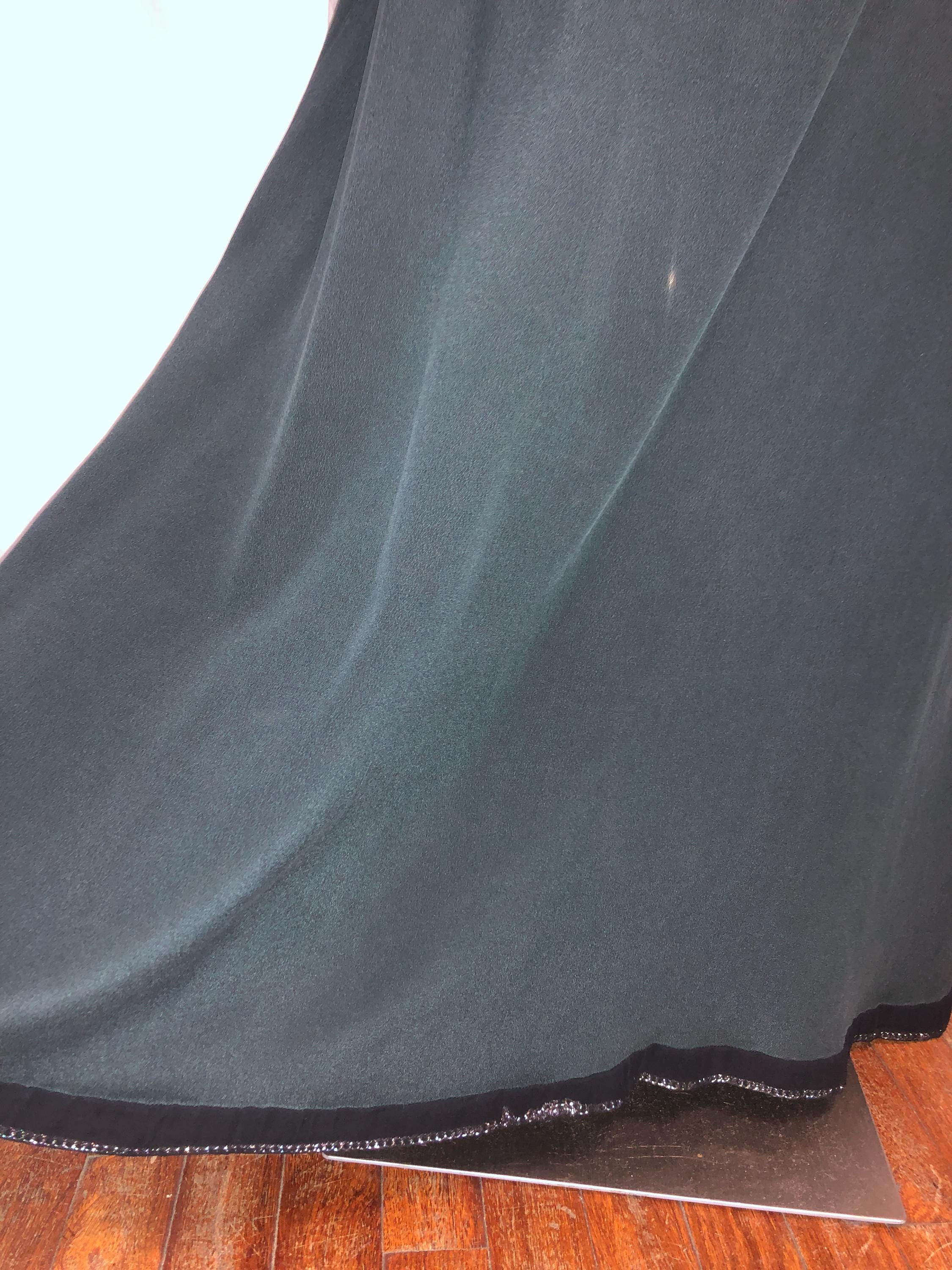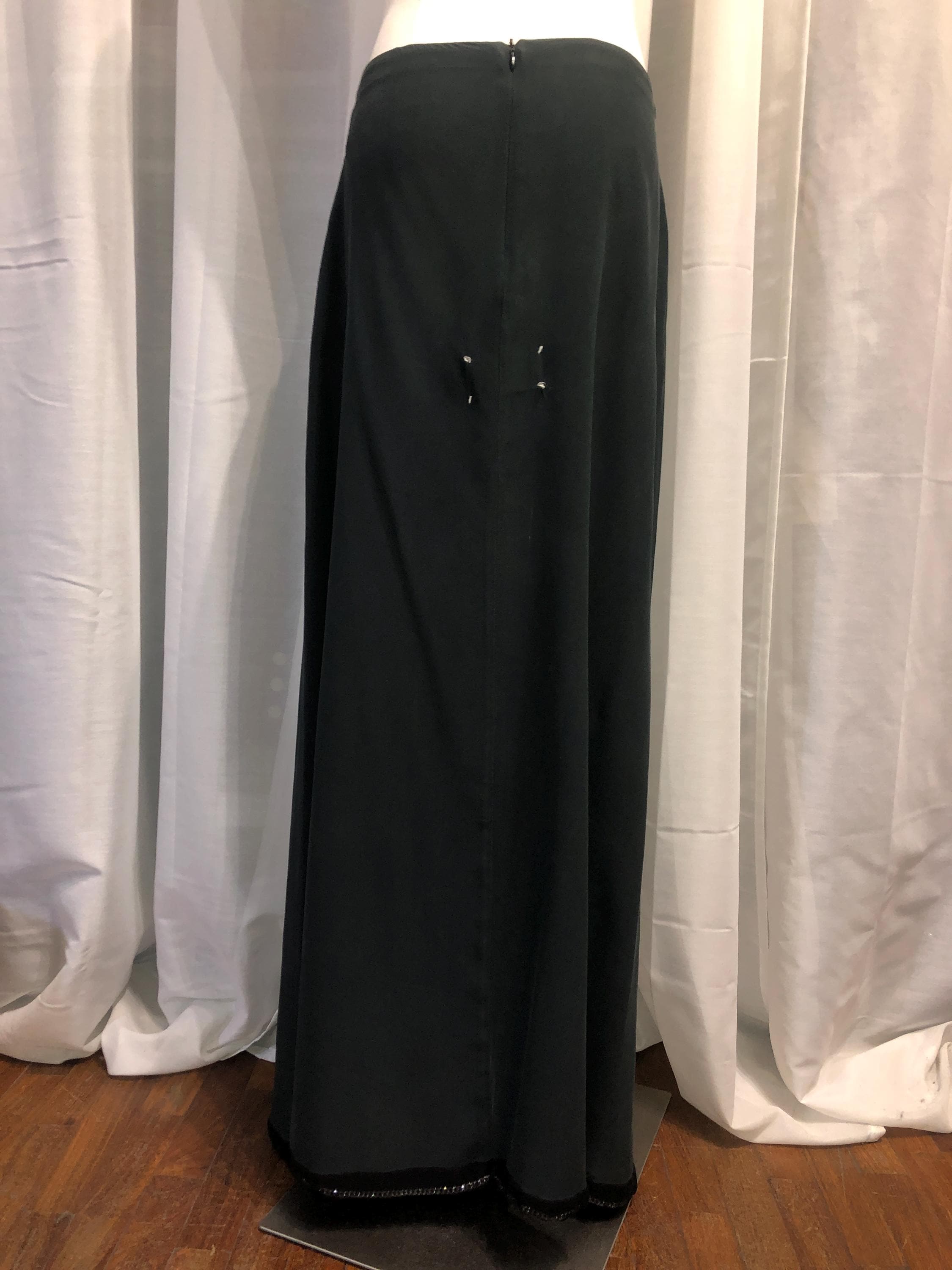 Maxi Skirt in Pure Grey/ Green Silk, Bordered with Metal Silver Chain Covered in Black Transparent Fabric as Bourdure and To Hold it Straight (as Chanel Teach).