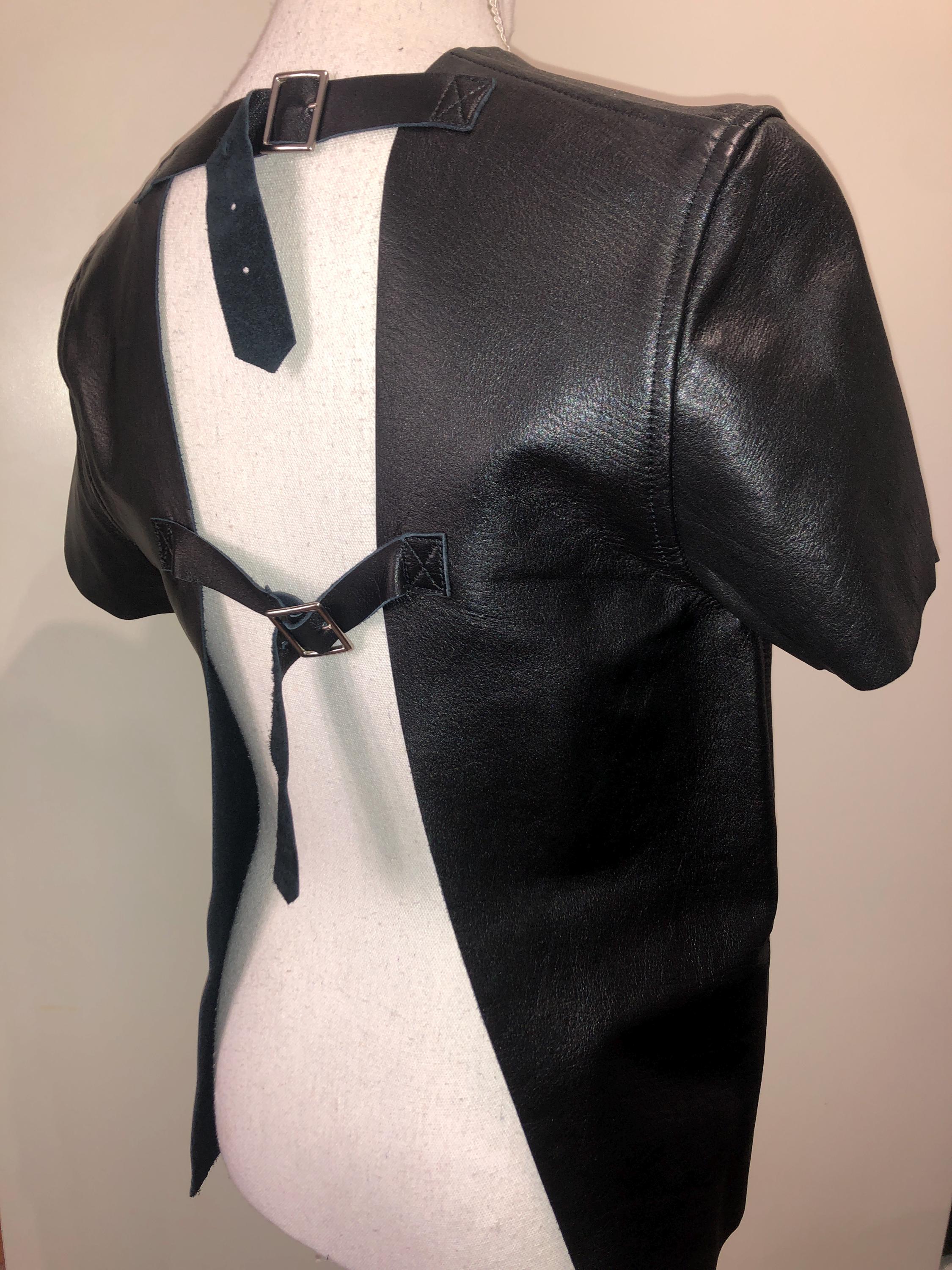 COMME DES GARĆONS BLACK LEATHER BACKLESS BELTED BONDAGE TOP
